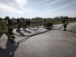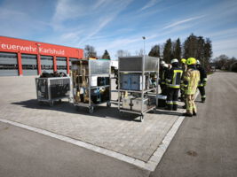 Am vergangenen Samstag organisierte die Kreisbrandinspektion Neuburg-Schrobenhausen in Karlshuld eine erste gemeinsame Übung für den neu aufgestellten Gefahrgutzug des Landkreises Neuburg-Schrobenhausen. Dieser setzt sich zusammen aus einem Führungsfahrzeug der Kreisbrandinspektion, dem Gerätewagen Gefahrgut (stationiert bei der Feuerwehr Schrobenhausen), dem Gerätewagen Dekon-Personal (Dekon-P) (stationiert bei der Feuerwehr Ehekirchen) und einem Löschgruppenfahrzeug des Katastrophenschutzes (stationiert bei der Feuerwehr Weichering). Im Einsatzfall wird der Zug ergänzt durch weitere Fahrzeuge der Feuerwehren Schrobenhausen, Ehekirchen, Weichering und Mühlried, sowie den beiden Unterstützungsgruppen Örtlicher Einsatzleiter (UG-ÖEL).