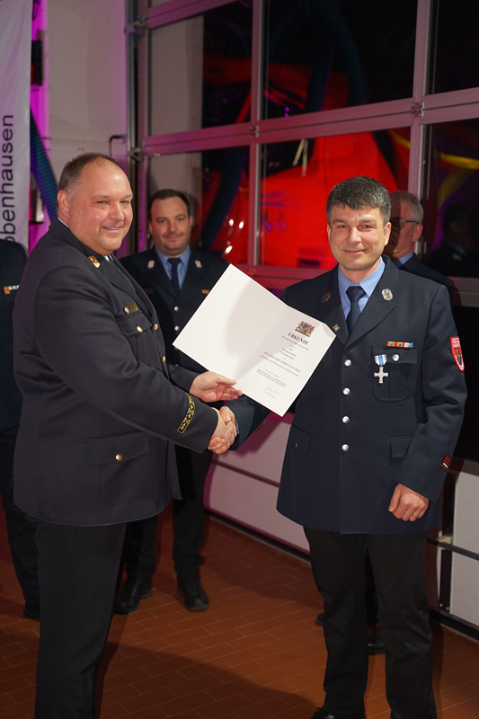 Schlingmann bedankte sich bei allen aktiven Kameradinnen und Kameraden für ihre ständige Einsatzbereitschaft und ihre professionelle Arbeit. Er bedankte sich auch bei allen Partnerinnen und Partnern, die so manche Abwesenheit im familiären Umfeld abfedern musste, damit der Partner ehrenamtlichen Einsatz leisten konnte.