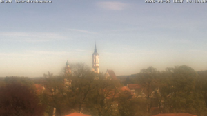 Anforderung zu einer Tierrettung, mit Hilfe der Drehleiter musste ein Storchennest auf dem Rathaus kontrolliert werden.