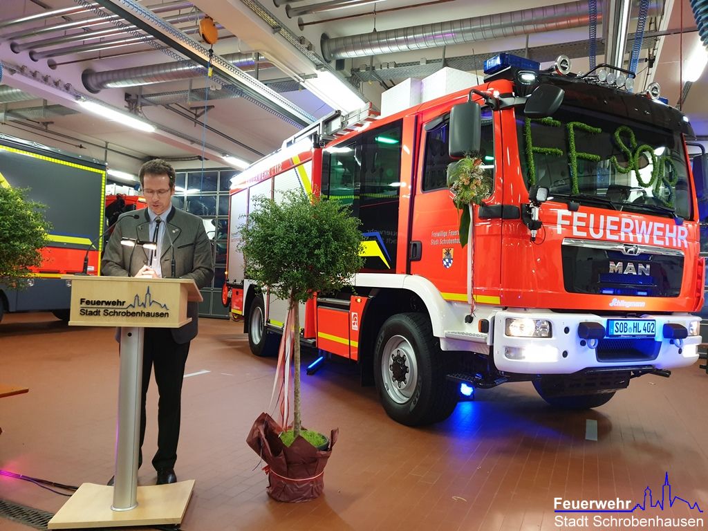 Aufgrund dieses vielfältigen Aufgabenspektrums, das neben dem Löschen von Bränden auch immer mehr die technische Hilfeleistung beinhaltet, hatte man sich als Ersatzbeschaffung für das alte Löschfahrzeug (LF 16 TS), nicht für ein reines Löschfahrzeug, sondern für ein kombiniertes Hilfeleistungslöschfahrzeug entschieden, wie Kommandant Ralf Schlingmann erklärte. Aufgrund mehrerer Anlaufschwierigkeiten bei der Ausschreibung verzögerte sich die Beschaffung des Fahrzeuges, das schließlich am 19. März 2019 mit großem Sirenengeheul und Wasserfontäne von vielen Aktien, der stellvertretenden Bürgermeisterin Inge Eberle und Stadtrat Günther Schalk in Schrobenhausen begrüßt wurde. Das neue 2.400l Wasser und 120l Schaum fassende 290 PS starke HLF 20 wurde in der Halle des Feuerwehr Gerätehauses ausgestellt und konnte -sowie auch seine Ausstattung- besichtigt werden.