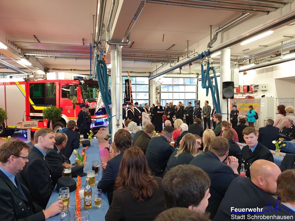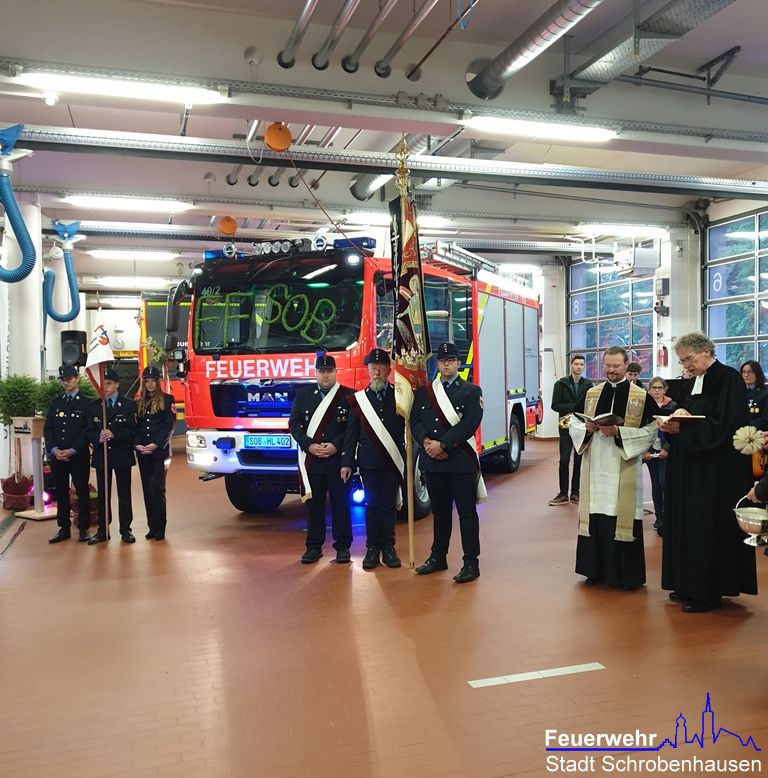 Nach dem Rückmarsch zum Gerätehaus dann stand dann die Einweihung des neuen Hilfeleistungslöschfahrzeuges (HLF 20) an. Ökumenisch wurde das Fahrzeug durch Stadtpfarrer Bühler sowie den evangelischen Pfarrer Gerhard Rupprecht gesegnet.