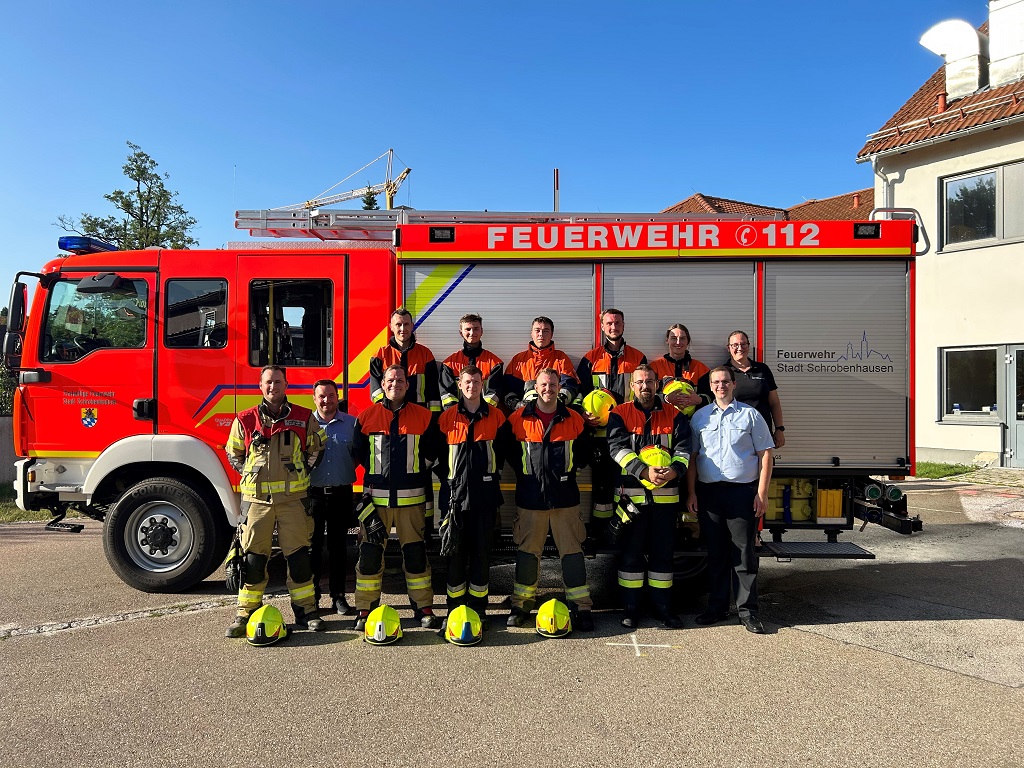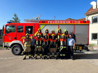 Strahlende Gesichter blicken beim abschließenden Gruppenfoto in die Kamera: Vorausgegangen war für zwei Gruppen der Feuerwehr Stadt Schrobenhausen die erfolgreiche Abnahme der "Leistungsprüfung Wasser" bei sommerlichen Temperaturen.