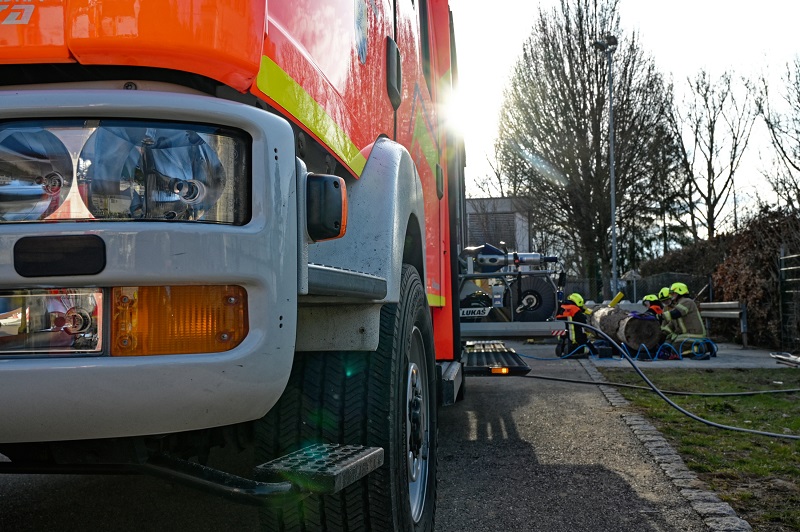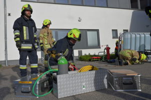 Drei Gruppen arbeiteten ein ähnliches Szenario ab. Jeweils war eine Übungspuppe unter einem schweren Gegenstand eingeklemmt und musste so schnell wie möglich gerettet werden. Zusätzlich wurde, als Wiederholung und für unsere neuen Aktiven, eine Drehleiterrettung am Schlauchturm geübt.