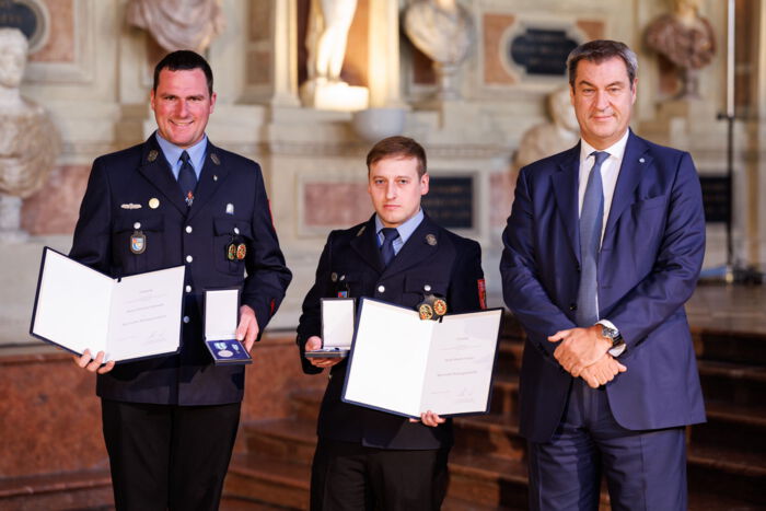 Am 26.09.2022 verlieh Ministerpräsident Dr. Markus Söder Mdl an 37 Lebensretter die Bayrische Rettungsmedaille. Darunter auch zwei unserer Feuerwehrmänner.