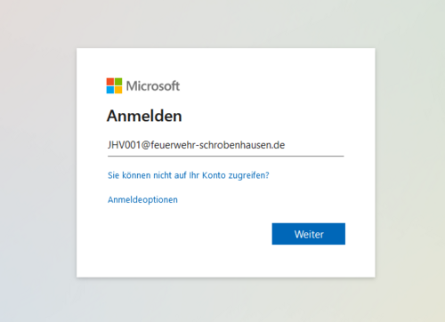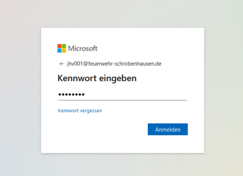 Den Benutzernamen findest du in der Email, in der du diese Anleitung erhalten hast. Der Benutzername endet mit @feuerwehr-schrobenhausen.de