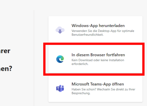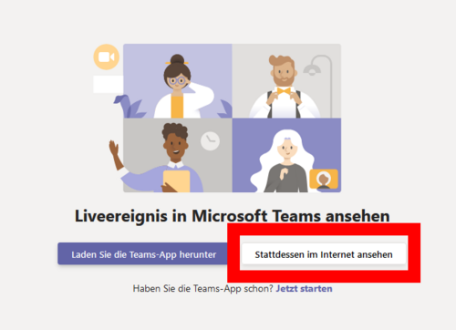 Damit du die Teams-Anwendung nicht installieren musst, kannst du einfach „Stattdessen im Internet ansehen“ anklicken. Die Anwendung öffnet dann in deinem Browser, ganz ohne zusätzliche Installation.