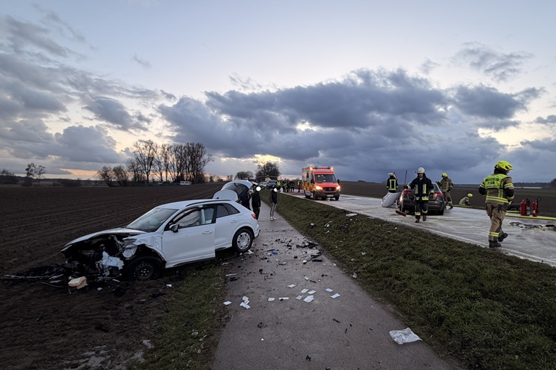 Zwei Pkw waren frontal zusammengestoßen. Personen waren keine in den Fahrzeugen eingeklemmt. Vor Ort wurden die auslaufenden Betriebsstoffe gebunden, der Brandschutz sichergestellt sowie die Straße vollständig gesperrt. Im weiteren Einsatzverlauf wurde zudem ein Landeplatz für den Rettungshubschrauber eingerichtet.
